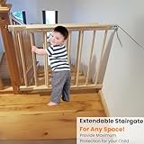 Novecrafto Multi-Purpose Wooden Baby Gate - Versatile Pet Safety Gate Extendable Stair Gates (72-122cm) in Natural Natural