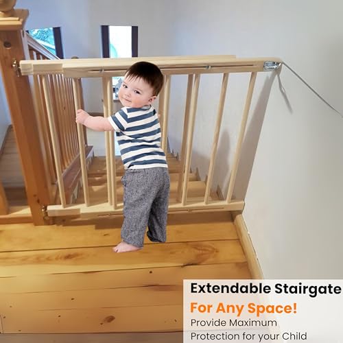 Novecrafto Versatile Wooden Baby Gate - Extendable Stair Gates (72-122cm) - Ideal for Babie