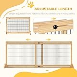 Pawhut - Adjustable Wooden Pet Gate Freestanding Dog Barrier for Doorway Natural