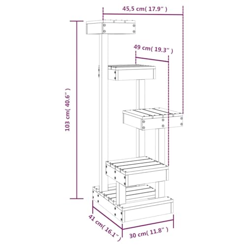 vidaXL Solid Wood Pine Cat Tree Wooden Pet Kitten Furniture Cat Scratch Tower Activity Centre Kitten Climber Scratching Tree 45.5x49x103 cm