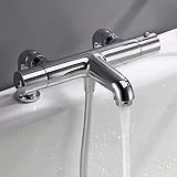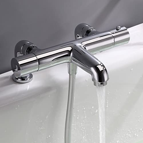 Nes Home Modern Thermostatic Bath Shower Mixer Tap Deck Pillar Chrome in Metallic Silver Metallic Silver