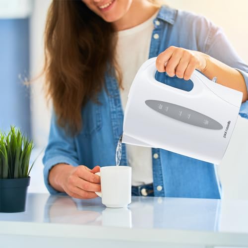 paul russells White Plastic Kettle - 1.7L Capacity, Perfect for 7 Cups, Family Size, Clear Wat