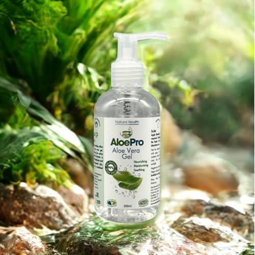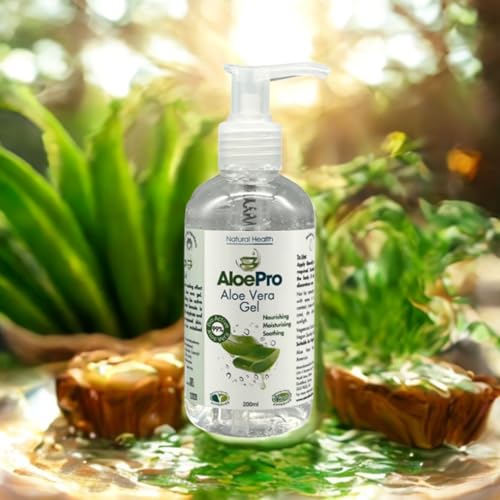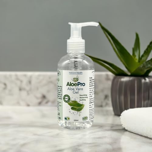 Aloe Pro Pure Vegan Aloe Vera Gel 200ml – Natural Aftersun, Cooling, Moisturising & Soothing | Cruelty Free | For Skin & Hair | Bug Bites, Minor Burns, Dermaplaning, Post-Laser Care