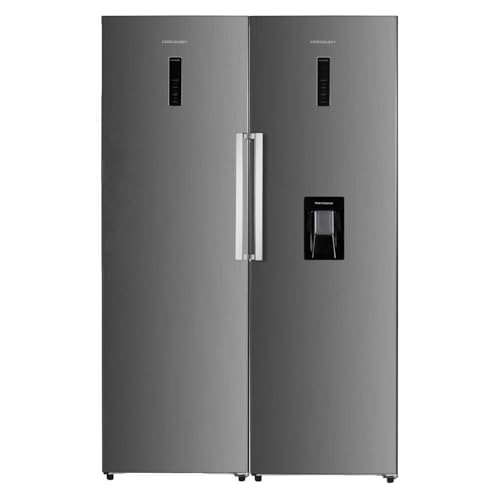 Cookology 630L Tall Fridge and Freezer Pack, Freestanding with Low Noise, Water Dispenser, Frost Free System, Digital LED Touch Display and Reversible Doors - Inox