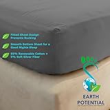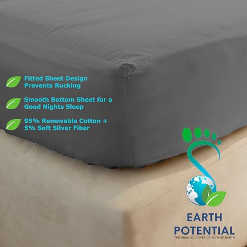 Earthing Grounding Fitted Double Sheet in Grey – 95% Cotton and 5% Soft Silver Conductive Thread for Healing and Better Sleep - supplied with a 5m earth cable and UK double outlet grounding plug