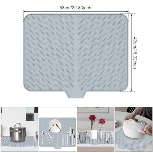 Large Silicone Dish Drying Mat, Ultra Absorbent Draining Board Mat, Non-Slip Fast Drying Drainer Mat, Heat Resistant Trivet Countertop Protector for Kitchen Counter or Sink,58x43cm