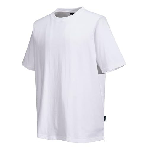 Portwest C195 Cotton Mesh Air Pro T Shirt Short Sleeve Chefs Workwear 100 Percent Cotton Breathable Mesh Back Unisex Catering Kitchen Uniform, White, M