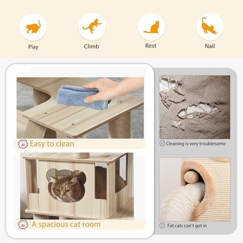 Mekidulu Cat tree for large cats 165cm-8 Story Cat tower, house, Transparent space capsule, Plush jumping platform, Toy ball, Claw-grinding sisal ladder(Wood color)