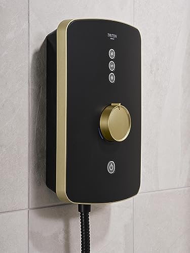 Triton Showers REAMDU97 Amala Metallic DuElec | Shower Electric | 9.5KW | Black I Brushed Brass I Electrical Showers | with Showerhead and Anti Twist Hose | Rainfall Shower Head | for Bathrooms