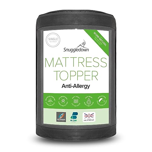 Snuggledown Anti-Allergy Mattress Topper Single Bed - 5cm Thick Anti Bacterial Comfortable & Supportive Mattress Pad - Deep Corner Straps, Hypoallergenic, Soft Knitted Washable Cover (90 x 190cm)