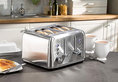 Daewoo Kensington, Toaster 4 Slice, Stainless Steel, Removable Crumb Tray, Defrost, Reheat And Browning Controls, Cancel Function, High Lift Lever, Easy To Clean, Stainless Steel