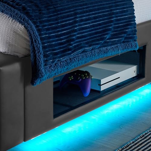 X Rocker AVA Upholstered TV Bed with Underbed Storage & LED Lights in Grey Size: Small Double Grey Small Double