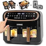 Duronic XXL Air Fryer AF34 BG 10L Digital Family Size Air Fryers Oil Free Triple Drawers 10in1 Dual Zone Extra Large AirFryer for Family Cooking with Dishwasher Safe Non-Stick Baskets Black