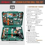 12V Cordless Drill Tool Kit 108 Pc Set by Hi-Spec – DIY Home Repair Tools Box