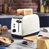 Russell Hobbs 2 Slice Lift & Look Toaster (Longer slots, 6 Browning levels, Defrost/Reheat/Cancel function, Removable Crumb Tray, 1670W, Cream & Stainless Steel Gloss finish) 26551