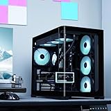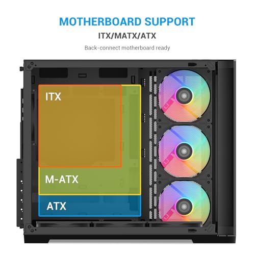 SAMA V60 Mid Tower PC Case, Curved Tempered Glass Panel, 7×120mm ARGB PWM Fans with Fan Hub, USB Type-C, High Airflow ATX PC Case for Case PC Gaming, Back-Connect Ready, 360mm AIO Support – Black