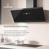 Klarstein FlashLine Cooker Hood - 90cm Angled Extractor Hood, Touch Screen Control, 524 m³/h Air Flow, A++ Energy Efficiency, LED Lighting, Quiet 34.5 dB, Black, Ducted & Recirculating