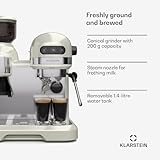 Klarstein - Bella Café Espresso Machine – 19-Bar, 1550W, Built-in Grinder, Milk Frother, 1.4L Water Tank, Thermo Block, 2-Cup Spout, Cream, Espresso