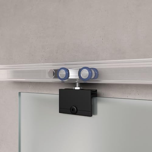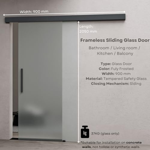 Durovin 900 * 2050mm Internal Sliding Glass Door - Fully Frosted - Black Bar Handle & Rail - with Soft Close & Track 5ft for Bathrooms Kitchens Living Room Bedroom