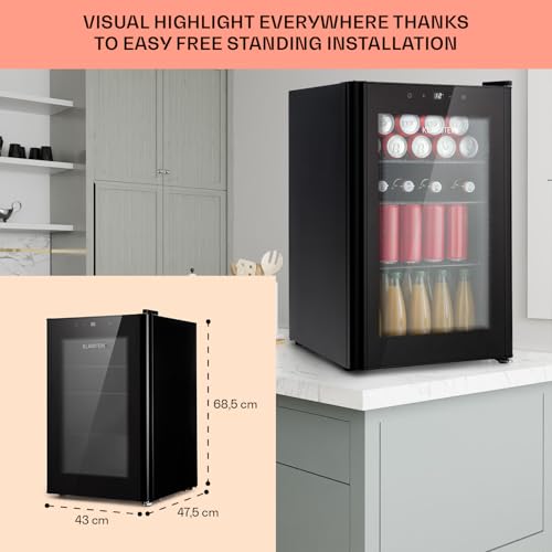 Klarstein - mini fridge with glass door & led, mini fridge for rooms, small drinks fridge with removable 3 shelves, small fridge 70L, indoor/outdoor