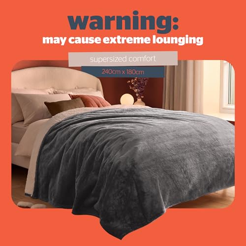 Silentnight Heat Genie Self Heating Giant Blanket - Cosy Warm Sherpa Fleece Throw with Unique Foil Layer to Retain Heat - Extra Large Reversible for Sofa Couch Bed Camping - 180x240cm, Charcoal