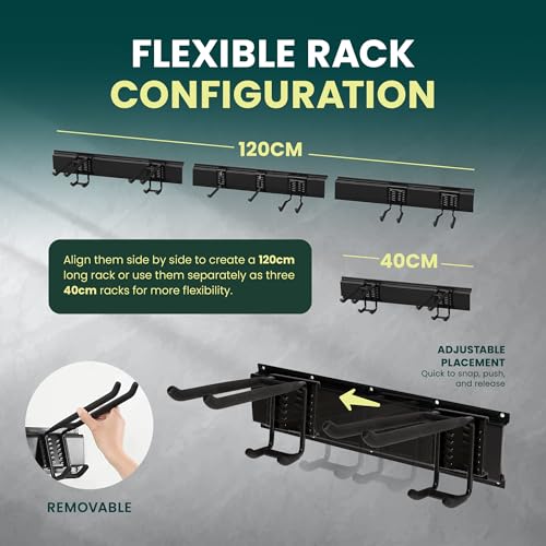 Green Haven Heavy Duty 48-inch Garden Tool Rack – Customisable Wall-Mounted Garage Tool Organiser with 7 Adjustable Hooks, Holds Up to 200KG, Ideal for Garden, Workshop & Shed Storage Solutions