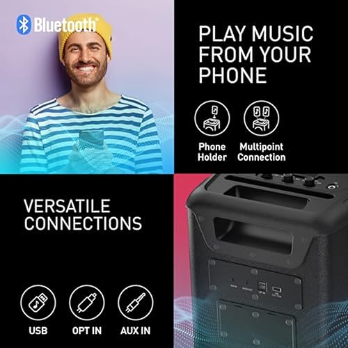 Panasonic SC-BMAX5E-K Portable Party Speaker with Bluetooth, Built-in Lights, 75W, USB, Optical Input for TV, Guitar & Mic Inputs for Karaoke, Black