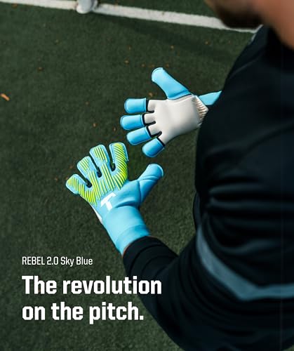 T1TAN Rebel 2.0 Sky Blue (FP) - Goalkeeper Gloves for Men - Professional Football Gloves for Adults and Teenagers - The Gloves for Football and Any Goalkeeper - with Finger Protection - Size 8