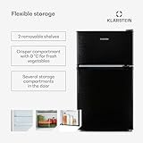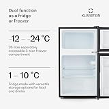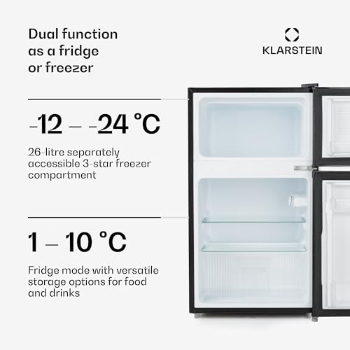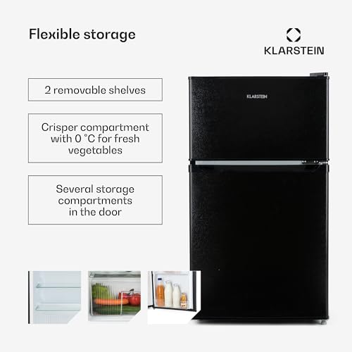 Klarstein Big Daddy Cool Fridge Freezer - Free-Standing, Small Fridge, Refrigerator, Freezer, 42 dB, Glass Shelves, Door Trays, Interior Lighting, 87 L, Black