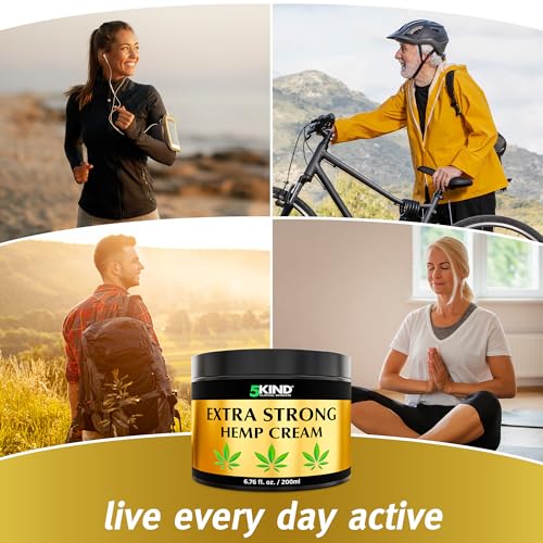 5kind Extra Strong Hemp Cream 200ml - High Strength Hemp Oil and Arnica Cream - for Massaging Joints & Muscles, Lower Back, Feet, Knees, Neck & Shoulders - Rich in Natural Extracts