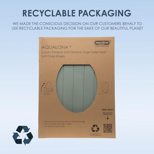 AQUALONA® Premium Sage Tongue and Groove Toilet Seat - Soft Close - Moulded Wood - Stainless Steel Slow Close Hinges - Wipe Clean - Easy Installation