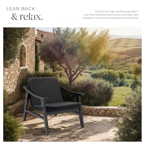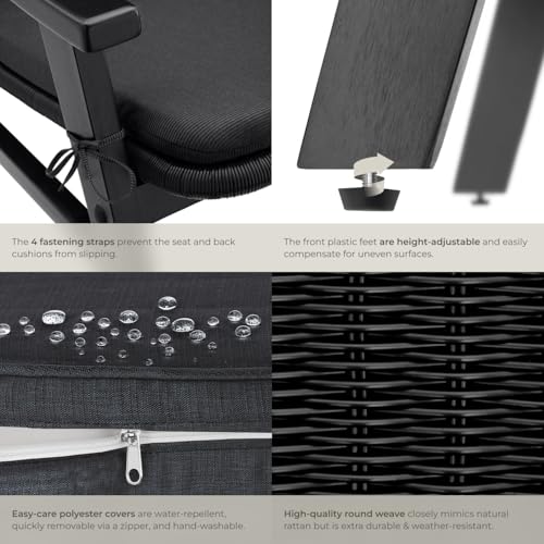 TecTake® Garden Armchair with Lacquered Wooden Frame, UV-Protection, Polyrattan Weave, Comfortable Cushions, Water-Repellent Cover & Easy Assembly - Ideal as Patio, Balcony & Garden Furniture - Black