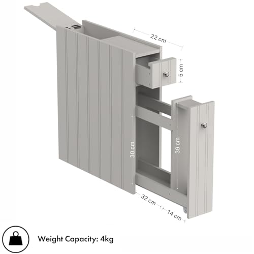 Taylor & Brown Slim Bathroom Floor Cabinet, Narrow & Compact Slimline Wooden Bathroom Organiser with Drawer & Slide Out Shelf, Freestanding Storage Unit, Grey