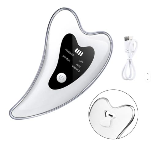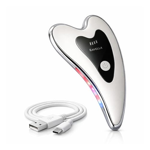 Face Massager with Red and Blue Light, Electric Gua Sha Soft Pearl White
