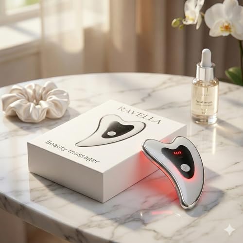 Face Massager with Red and Blue Light, Electric Gua Sha Facial Sculptor for Face Neck and Body, Heated Beauty Device with EMS and Vibration for Sculpting, Firming & Skincare
