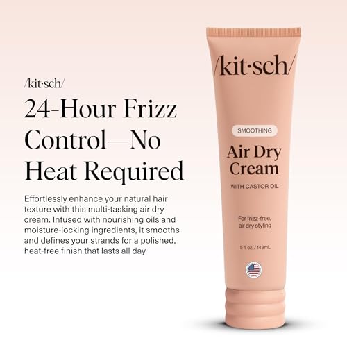 Kitsch Smoothing Air Dry Cream for Hair – Frizz Control Hair Care Product with Castor Oil & Coconut Oil – Weightless Styling Cream - Enhances Natural Texture Appearance – 5 oz