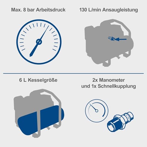 Scheppach C-ACT160/6-X Cordless Air Compressor | 6L | 8 Bar | Oil-Free | Pump & Accessory Set | 40V Bare Tool