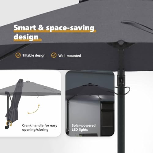 vidaXL Garden Parasol Manual Anthracite 248 x 248 x 148 cm, Adjustable Garden Parasol, Modern Outdoor Umbrella, Wall-Mountable Sun Shade, Durable Patio Canopy, Solar LED Lighting