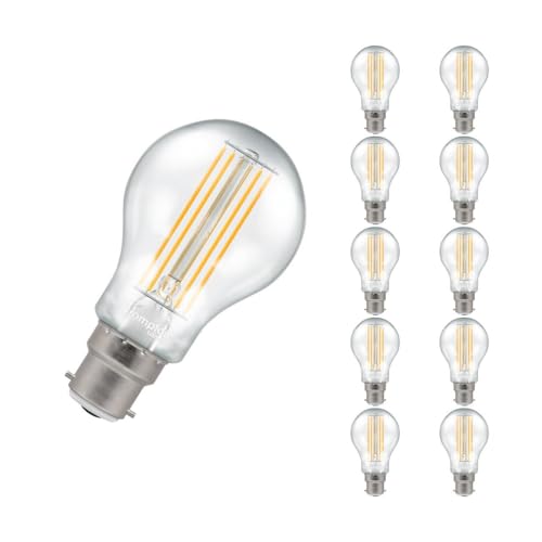 Crompton Lamps LED Ultra-Efficient GLS 7.2W BC-B22d A-Class (10 Pack) (100W Equivalent) 3000K Warm White Clear 1521lm BC Bayonet B22 Energy Efficient Filament A-Rated Multipack Light Bulbs