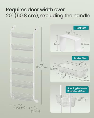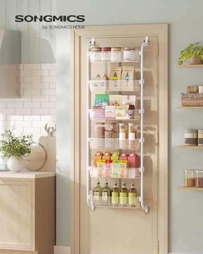 SONGMICS Over-the-Door Pantry Storage Organiser, 6-Tier Door-Hanging Spice Rack with Adjustable Tall Baskets, Space-Saving, for Kitchen Bedroom Bathroom Laundry Room, Transparent KCS046WG01