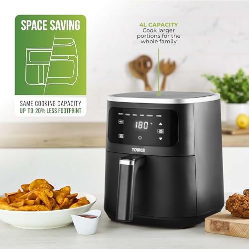 Tower T17205AFR Digital Single Basket Air Fryer, 4L Capacity, Medium, Black