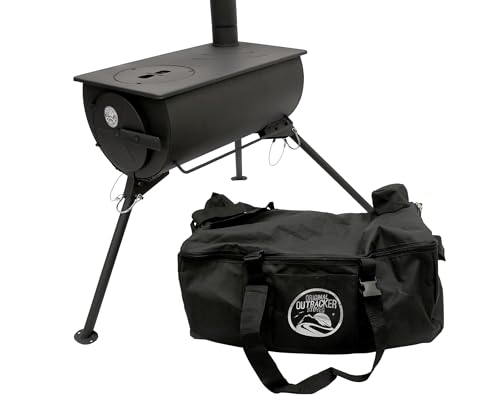 Outbacker Pioneer Portable Wood Burning Tent Stove & Complete 2.41m Flue Kit – 2.5kW Output | Lightweight 10kg Camping Stove with Removable Hot Plate | Compact Kit