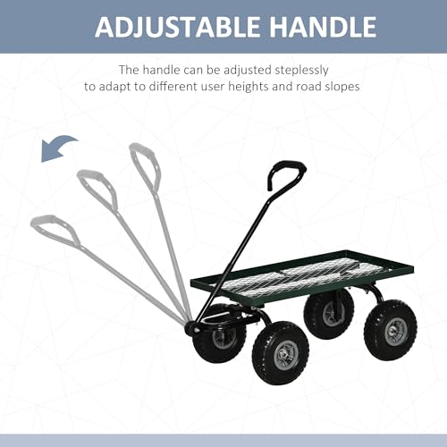 Outsunny Garden Trolley Cart, Heavy Duty Garden Cart with Metal Frame, 10" Pneumatic Wheels, Rotating Handle, 150kg Capacity, for Garden, Farm, Green