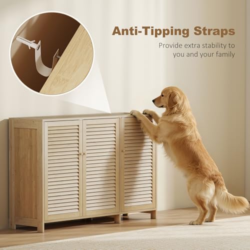 HOMCOM Bamboo Shoe Cabinet with Louvered Doors 18 Pairs Shoe Storage Cabinet in Natural Size: Large Natural Large