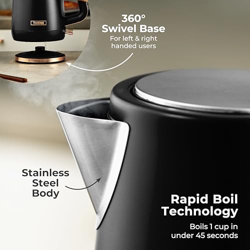 Tower Cavaletto 1.7L Kettle 3KW Rapid Boil | 360° Swivel Base | Black/Rose Gold