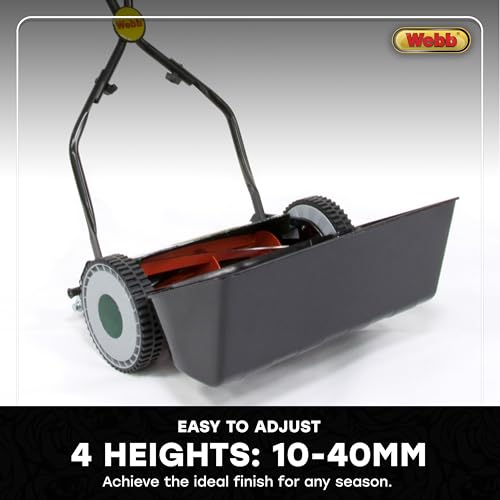 Webb WEH30 Sidewheel Manual Hand Push Cylinder Lawnmower with 4 Cutting Heights, 30cm Cutting Width and 17L Collection Box - Voted Best Buy Budget Mower by BBC Gardener’s World - 3 Year Guarantee