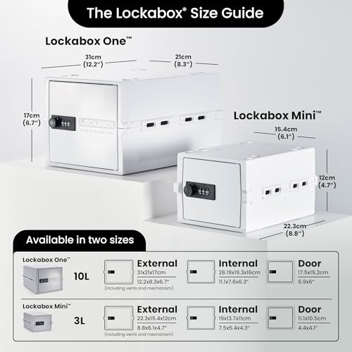 Lockabox One⢠| Premium Lockable Storage Box (10L) | Combination Lock Box for Food, Medicine & Home Safety | Made In Britain | External Size 31 x 21 x 17 cm (Opal White)