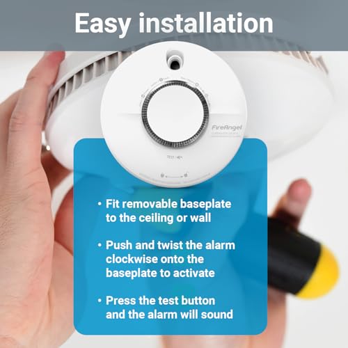 FireAngel Combination Smoke and Carbon Monoxide Alarm for Home - SCB10-R, 10 Year Life, Dual Carbon Monoxide Detector and Smoke Alarm with Test and Hush Button - Combined CO and Fire Alarm - White