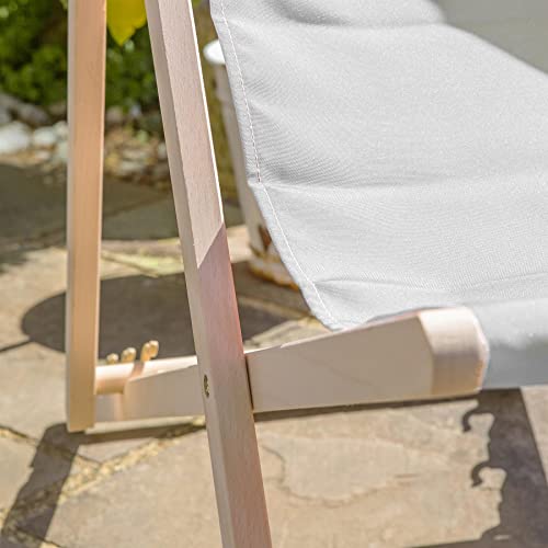 Harbour Housewares Folding Wooden Deck Chairs – Light Grey – Pack of 1 – Adults Traditional Foldable Reclining Outdoor Canvas Sun Lounger Chair Seat for Garden Patio, Beach, Camping