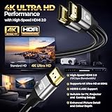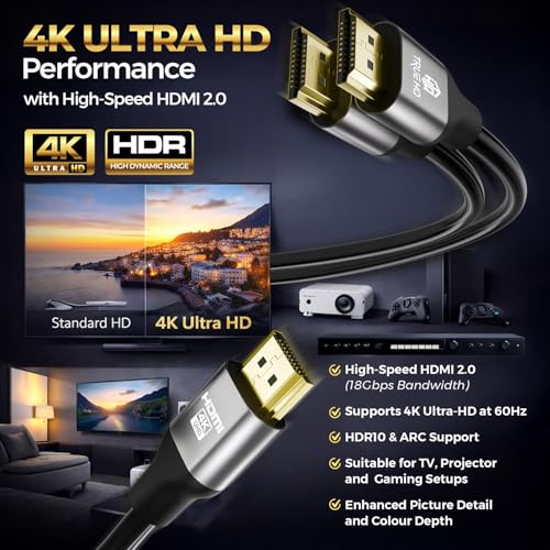 True HQ 4K HDMI Cable 20m, High Speed 18Gbps (HDMI 2.0), 4K@60Hz Ultra HD with HDR10, ARC, HDCP 2.2 and Ethernet – Long Lead for TV, Projector, Monitor, Laptop, PS5, Xbox